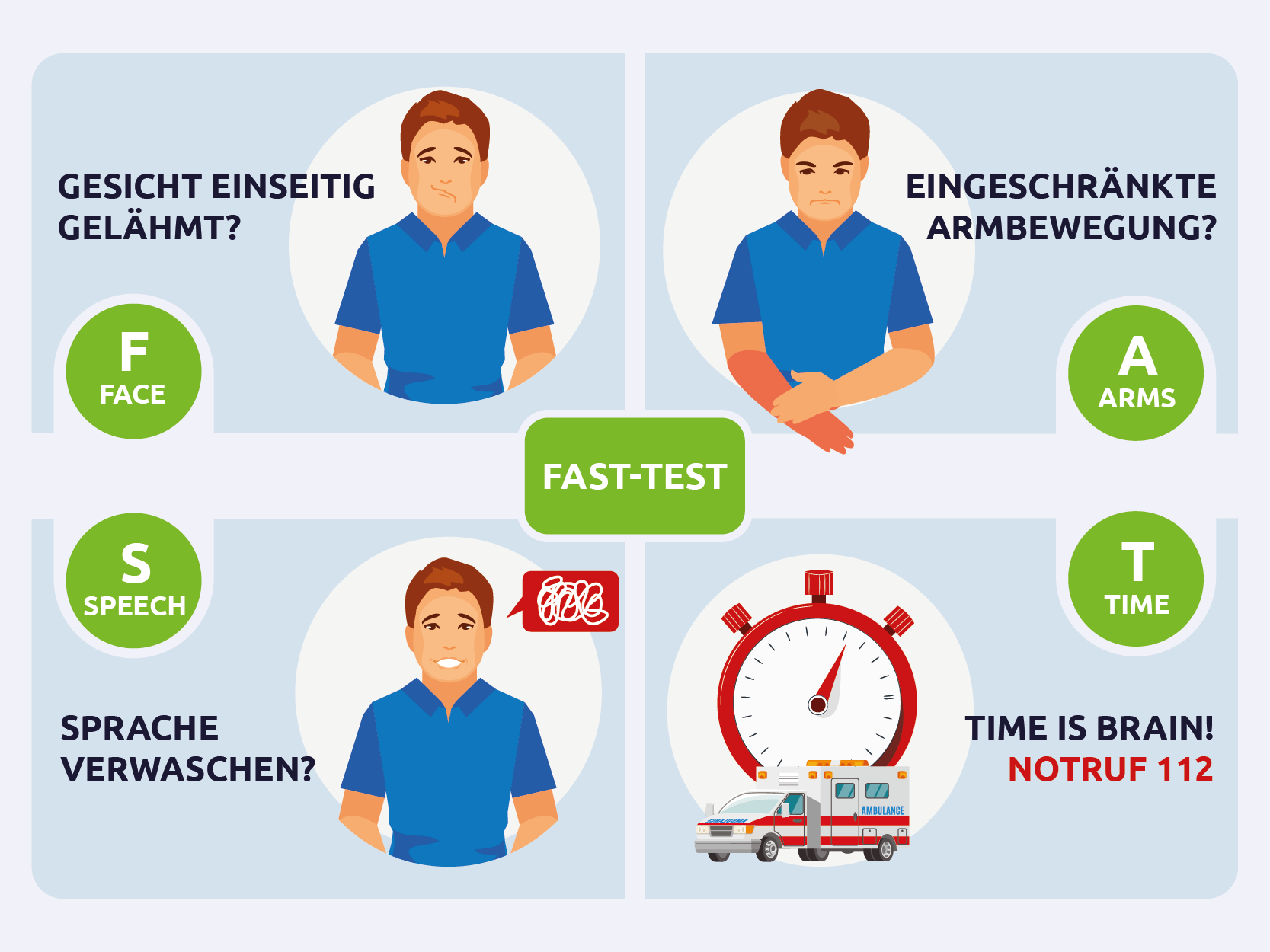 Beim FAST-Test handelt es sich um einen Schnelltest zur Erkennung eines Schlaganfalls, der auch von Laienhelfern durchgeführt werden kann.