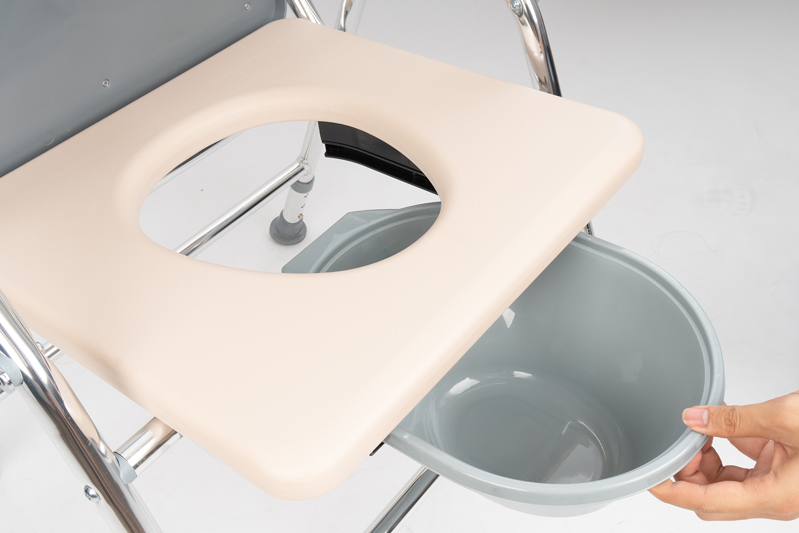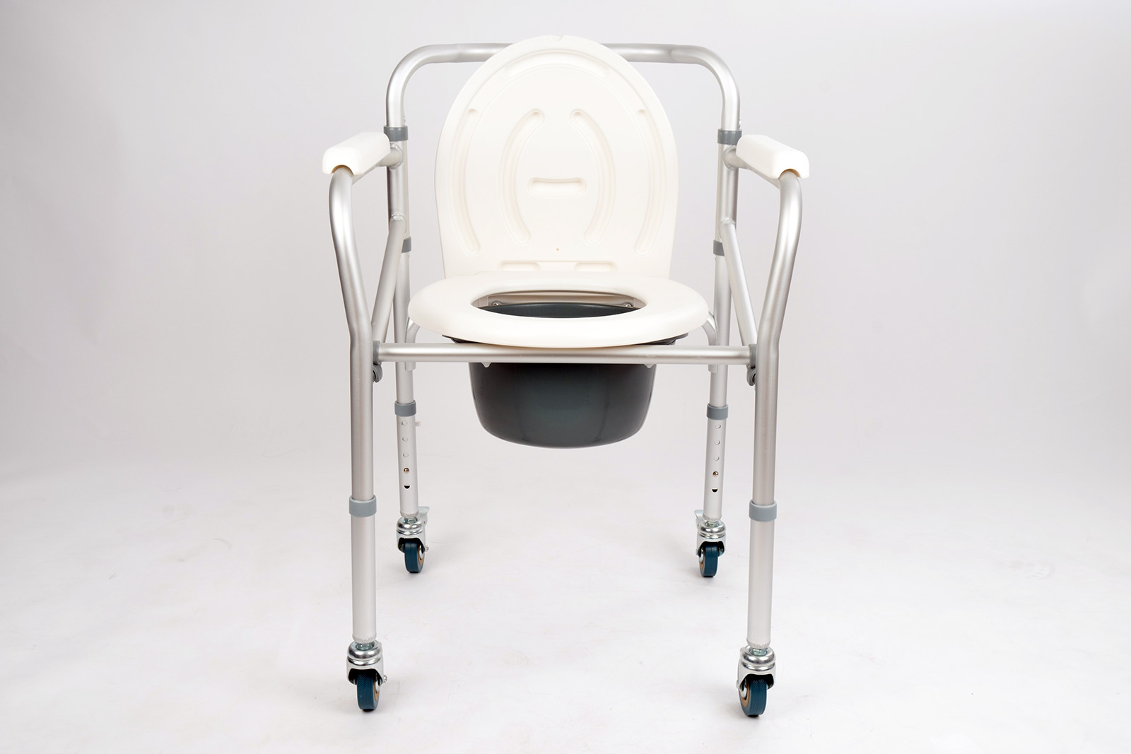 Fahrbare Toilettenrollstühle sind ideal, um immobilien Patienten das Abführen zu erleichtern oder sie über kurze Distanzen zu transportieren.